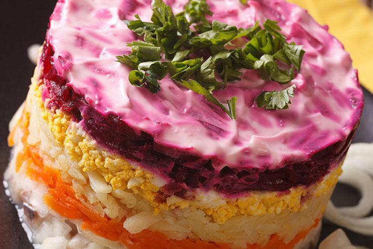 Soğuyan salatanızı ters çevirip dilimleyerek servis edin. Afiyet olsun…