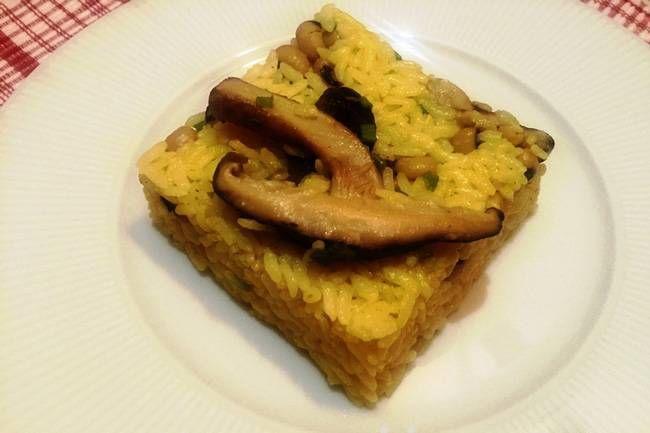 Pirinci ılık su ile ıslatıp 10 dakika bekletin. Mantarları yıkayıp kurulayın ve dilim dilim doğrayın. Zeytinyağını ve tereyağını tencerede ısıtın. Kesme şeker koyun. Mantarları ilave edip birkaç dakika hızlı ateşte soteleyin. Yıkanmış ve süzülmüş pirinci ilave edin, tuz ekleyin ve 2-3 dakika birlikte kavurun.