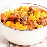 Üzerine salça ve suyu da karıştırıp ilave edin. Kısık ateşte bir süre pişirin.