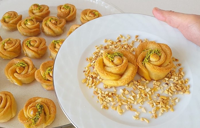 Bugün hem görüntüsüyle hemde lezzetiyle aklınızı başınızdan alacak bir tatlı tarifimiz var. Gül şeklini verdiğimiz tatlımızın yapımı da oldukça kolay. Nasıl gül şekli verildiğini gördüğünüzde çok şaşıracaksınız. Hadi gelin hemen bu nefis şerbetli gül tatlısının malzeme listesine bakalım. Sonrasında da hep birlikte tatlılarımızın yapımına geçelim. Bakalım gül şeklini nasıl veriyoruz. Gül tatlısı tarifi malzemeleri 125 gram tereyağ veya margarin 1 ...