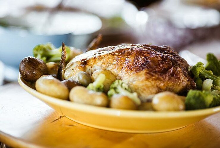 Yapımı için malzemeler 1 adet hindi rosto 10 adet taze patates 2 su bardağı Brüksel lahanası 1 adet kuru soğan 2 adet havuç 2 diş sarımsak 1 yemek kaşığı un 2 yemek kaşığı kıyılmış maydanoz 2 yemek kaşığı tereyağı 1 tatlı kaşığı hardal Tuz Karabiber Hindi rosto tarifi Nasıl yapılır? Patates, Brüksel lahanası ve havucu kaynayan suda 5 dakika haşlayın. ...