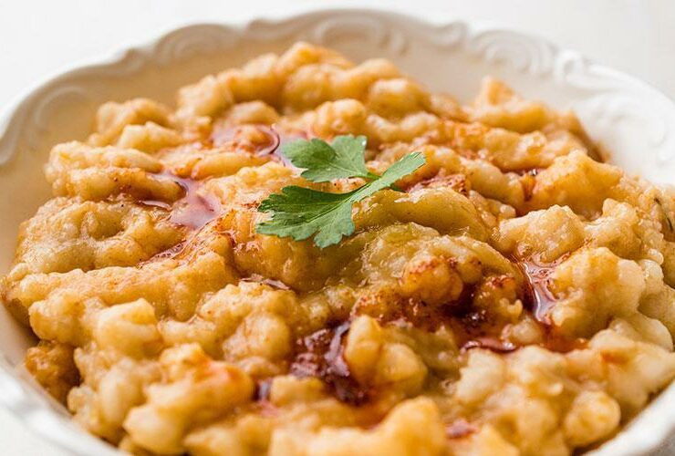 Yapımı için malzemeler 4 adet yufka 4 adet tavuk göğsü 1 tatlı kaşığı pul biber 1 yemek kaşığı tereyağı Tuz Kayseri tiridi tarifi Nasıl yapılır? Yufkaları rulo halinde sarıp iki parmak genişliğinde kesin. Cam kaba sıkı şekilde yerleştirin. 180 derece fırında 20 dakika kurutun. Tavukları tencere haşlayın ve küçük parçalara ayırın. Tavukları suyuyla beraber yufkaların üzerine dökün. Tereyağını eritin ve pul biberle kızartın. Tiridin üzerine ...