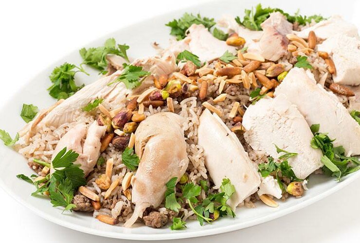 Yapımı için malzemeler 1 adet bütün tavuk 3 su bardağı haşlanmış nohut 1 tatlı kaşığı tuz İç harcı için: 2 adet kuru soğan 1 kahve fincanı pirinç 1 yemek kaşığı kuş üzümü 1 yemek kaşığı dolmalık fıstık 2 çay kaşığı tarçın 1 çay kaşığı yeni bahar 1 kahve fincanı zeytinyağı 1 tatlı kaşığı tuz Sosu için: 2 yemek kaşığı un ...