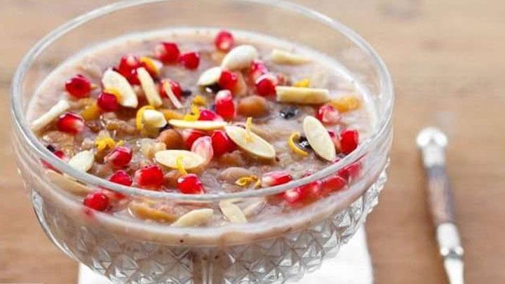 Yapımı için malzemeler 4 su bardağı hazır sıvı salep 5 su bardağı su 3 yemek kaşığı mısır nişastası 1 su bardağı su 2 su bardağı şeker 1 su bardağı haşlanmış aşurelik buğday 1 su bardağı haşlanmış kuru fasulye 1 yemek kaşığı pirinç 1 yemek kaşığı pilavlık bulgur Üzerini süslemek için: 3 yemek kaşığı pekmez 1 su bardağı dövülmüş ceviz Salepli ...