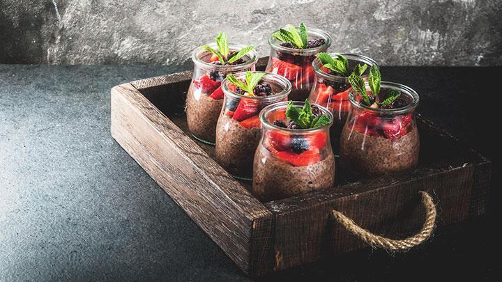 Yapımı için malzemeler Puding için: 1 paket çikolatalı puding 2 su bardağı süt Pelte için: 1,5 çay bardağına yakın buğday nişastası 1 su bardağı toz şeker 2 su bardağı su 2 su bardağı meyve suyu Arzuya göre meyve parçaları Süsleme için: Yarım demet taze nane 1 paket krem şanti 1 su bardağı süt Çikolatalı pudingle meyve serinliği tarifi Nasıl yapılır? ...