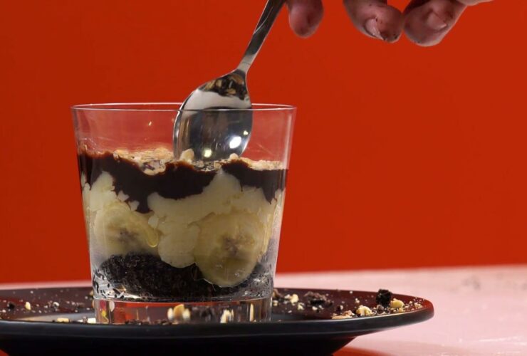 Yapımı için malzemeler Tabanı için: 6 adet kakaolu kremalı bisküvi 2 yemek kaşığı tereyağı Kreması için: 1 paket krema 300 mililitre süt 1 paket vanilya 2,5 yemek kaşığı tereyağı 2 yemek kaşığı un 1 su bardağı şeker 80 gram beyaz çikolata Çikolata sos için: 1 paket bitter çikolata 1 paket krema Diğer malzemeler: 1 adet muz Yer fıstığı Minnoş tatlısı ...
