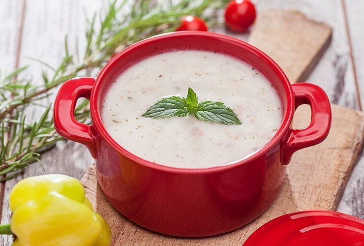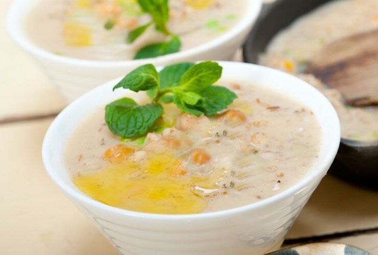 Yapımı için malzemeler 1 kilogram süzme yoğurt 1 su bardağı haşlanmış aşurelik buğday Yarım su bardağı haşlanmış nohut 1 yemek kaşığı kuru nane 2 yemek kaşığı zeytinyağı 1 çay kaşığı tuz Ayran çorbası tarifi Nasıl yapılır? Süzme yoğurdun içerisine 1 su bardağı soğuk su ekleyerek pürüzsüz bir kıvam alana dek çırpın. İçine haşlanmış buğdayı, nohudu, bir çay kaşığı tuz ilavesi ...