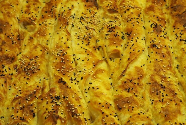 Yapımı için malzemeler Hamuru için: Yarım kilogram un 1 çay bardağı krema 1 çay bardağı ılık süt 10 gram kuru hamur mayası 1 tatlı kaşığı toz şeker 1 çay kaşığı tuz İç malzemeleri için: 500 gram patlıcan 250 gram kıyma 1 adet soğan Yarım kahve fincanı zeytinyağı 2 adet sivri biber 2 adet domates Tuz Karabiber Pul biber Hamurların arası ...