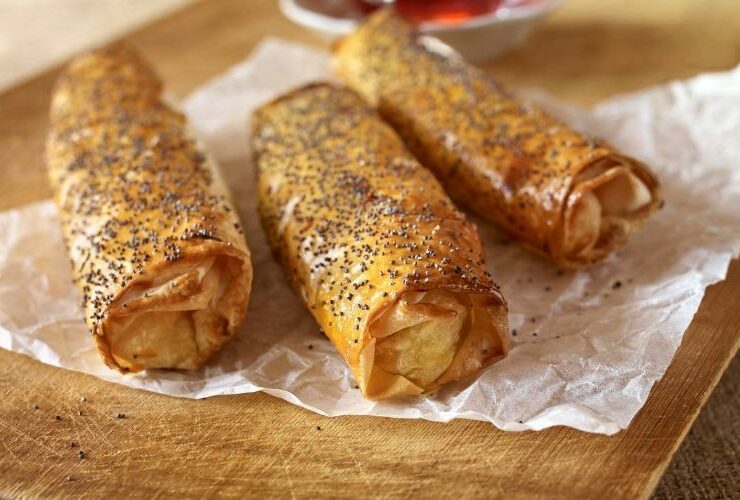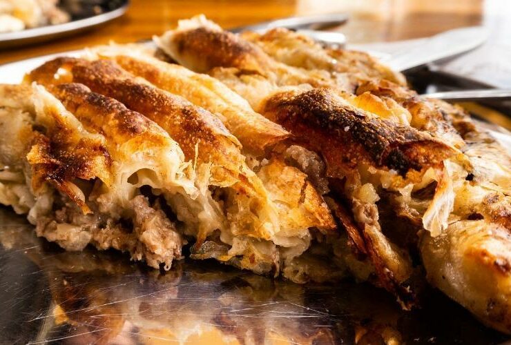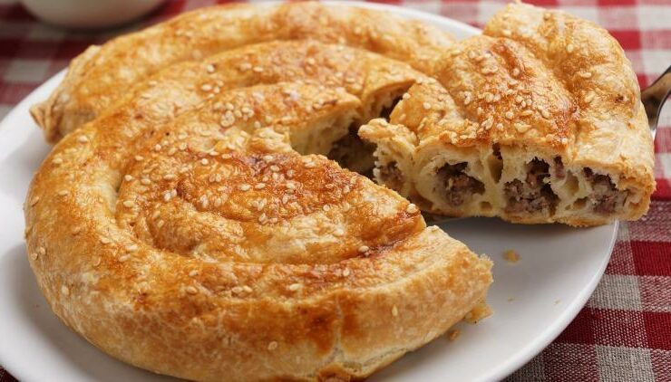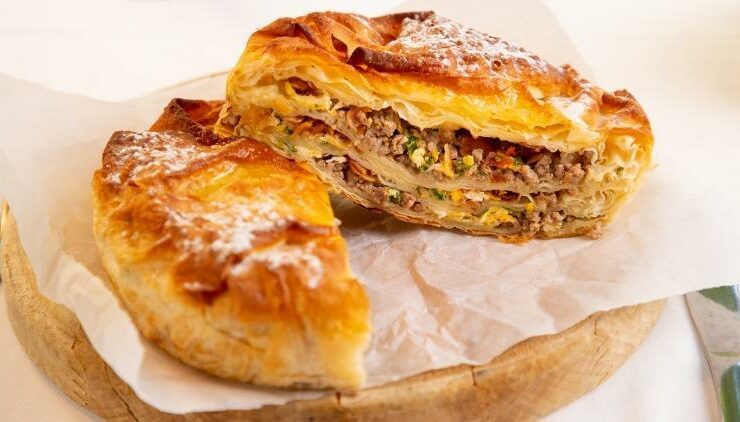 Yapımı için malzemeler 4 adet baklavalık yufka Sos malzemesi: 1,5 su bardağı süt 1 çay bardağı sıvı yağ 1 yumurta İç malzemeleri: Yarım kilo kıyma 1 çay bardağı kuş üzümü 1 çay bardağı dolmalık fıstık 3 adet kuru soğan 1 tatlı kaşığı karabiber, pul biber -tuz 1 tutam ince kıyılmış maydanoz (isteğe bağlı) Yeteri kadar zeytinyağı Üzeri için: 2 adet ...