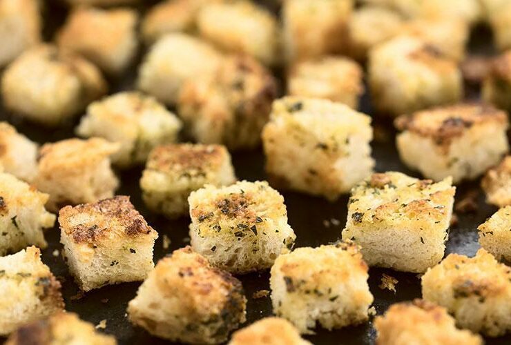 Yapımı için malzemeler Bayat ekmek Tereyağı Nane, pul biber, kekik Kruton tarifi Nasıl yapılır? Bir orta boy tavanın dibini kaplayacak kadar ekmek için 1 kaşık tereyağını eritin. Bayat ekmekleri erimiş tereyağına koyun. Çevirerek kızartın. Altını kapatmaya yakın baharatları ekleyin. İster sıcak servis edin isterseniz kilitli poşette buzlukta saklayın. Üzerine sarımsaklı yoğurt dökerek etsiz bir tür mantı da hazırlayabilirsiniz. Bayat ekmekten ...