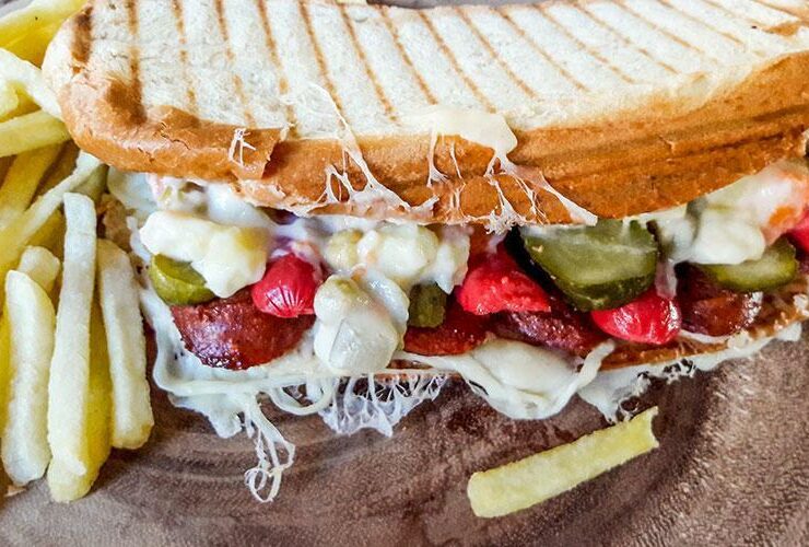 Yapımı için malzemeler 4 dilim Ayvalık tostu ekmeği (dilerseniz başka bir ekmek de kullanabilirsiniz) 8 dilim kaşar 6 adet kokteyl sosis 8 dilim sucuk 1 adet domates 2 adet salatalık turşusu 2 yemek kaşığı zeytinyağı 4 yemek kaşığı Rus salatası Ayvalık tostu tarifi Nasıl yapılır? Sosis, salam ve turşuları ince uzun çubuklar halinde doğrayın. Sucukları yuvarlak yuvarlak dilimleyin. Kaşar peynirini ...
