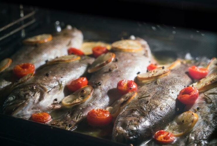 Yapımı için malzemeler 3 adet alabalık 2-3 adet patates Tereyağı Tuz Kekik Karabiber Fırında patatesli ve tereyağlı alabalık tarifi Nasıl yapılır? Balıkları güzelce yıkayın. Uzunlamasına ortadan ikiye ayırın ve tepsiye dizin. Yuvarlak dilimler halinde doğramış olduğunuz patatesleri balıkların aralarına yerleştirin. Patateslerin ve balıkların üzerine fındık büyüklüğünde parçalar halinde tereyağlarını koyup üzerine hafif tuz, karabiber ve kekik serpip fırına verin. ...