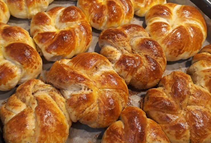 TEREYAĞLI AÇMA TARİFİ @cahide_sultan Malzemeler 1 su bardağı süt (ılık) 1 su bardağı su Yarım su bardağı sıvıyağ 2 yumurta (birinin sarısı ayrılacak) 1.5 yemek kaşığı şeker 1.5 tatlı kaşığı tuz Yarım çay kaşığı mahlep 6 su bardağı kadar un Yarım paket yaşmaya Arasına sürmek için: 200 gr. kadar tereyağı Sponsorlu Bağlantılar HAZIRLANIŞI Hamur için sıvı ...