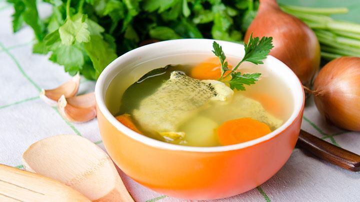 Tencereye ayıklanmış olan balık kafaları, kuyruk ve kemiklerini koyun. Soğanı, kerevizi ve havucu doğrayın ve tencereye ekleyin. Daha sonra kereviz sapları, limon suyu veya sirkeyi, sarımsakları ve maydanoz yapraklarını ilave edin. Baharatları da ekledikten sonra 8-10 bardak soğuk su ekleyerek tencerenin ağzı açık bir şekilde orta ateşte ocağa koyup 45 dakika kadar kaynatın.
