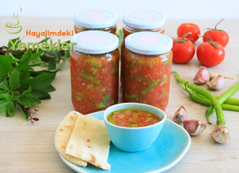 - Domatesler rendelenir, biberler küçük küçük doğranır bütün malzemelerin hepsi birbirine iyice karıştırılarak bir kasede üzerine Streç folyo ile kapatıp bir gece buzdolabında bekletilir.