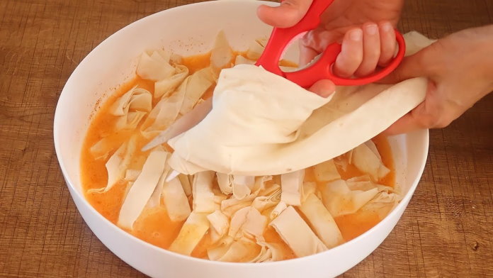 Bugün sizleri hayatınızda göreceğiniz en kolay börek tarifi ile tanıştırıyorum. Böreğin yapımında bir sos hazırlıyoruz ve yufkaları bu sosun içine parçalar halinde atarak birleştiriyoruz. Sonrasında tavada altlı üstlü pişiriyoruz. İnanın anlatımından bile kolay yapılan bir börek oluyor.