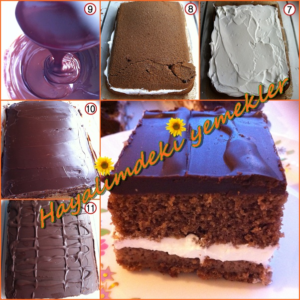 - krem santiyi sutle islattiginiz brovni kekin ustune surun her tarafina iyice yayin ve kekin ust kisminida kapatip cikolata sosunu browni pastanin ustune surun ama biraz cikolata birakin sonradan pastanin uzerine sekil vermek icin kullanilacak