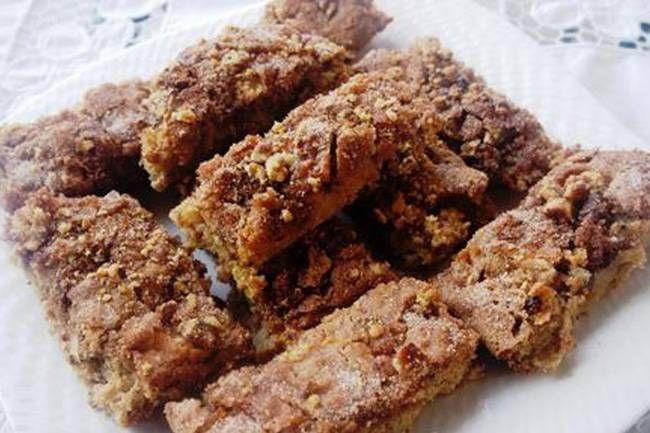 Karışımı yağlanmış fırın kabına aktarın. Geri kalan beyaz şeker ve tarçını birlikte eleyin ve üzeri spatulayla düzeltilen hamurun her tarafına cevizle birlikte serpin. 25-30 dakika kadar pişirin.