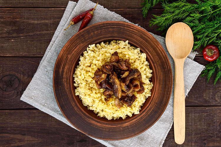 Servis tabağına koyduğunuz pilavın üzerine kuşbaşı haşlanmış et dökülerek servis yapın.