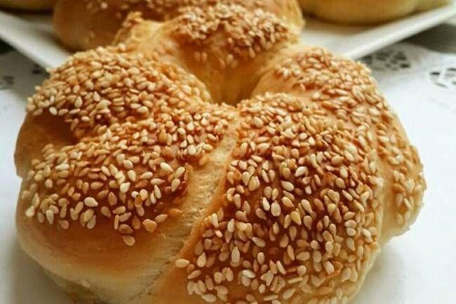 Hamurdan ceviz büyüklüğünde parçalar koparın. Yuvarlayarak ince çubuklar elde edin. Bu çubukları birbirinin üzerine dolayarak simit şekli elde edin. Önce pekmezli suya ardından da susama batırarak tepsiye dizin.