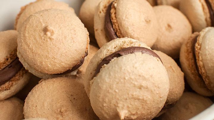 Köpüklerin alt kısımlarına fındık ezmesi sürün ve iki tanesini birbirine yapıştırın.