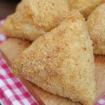 1 yumurtanın beyazı, 2 yemek kaşığı yoğurt ve 50 gram tereyağını karıştırın. Ardından, 300 gram glutensiz un, 1 tatlı kaşığı karbonat ve tuz ekleyip kulak memesi kıvamına gelene dek yoğurun.