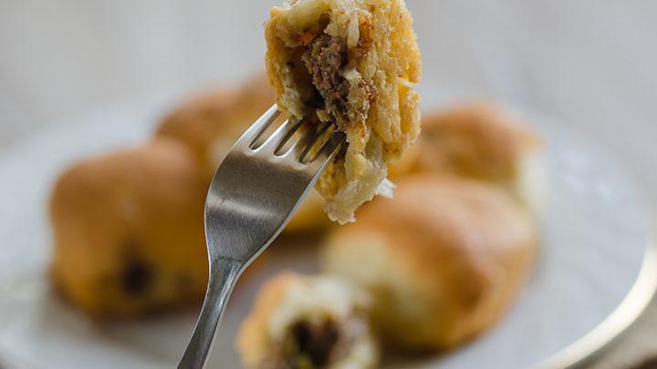 Hamuru parçalara ayırdıktan sonra içine istediğiniz malzemeyi ekleyip, şekil verin. 1 yumurtanın sarısını ve çok az zeytinyağını bir kapta karıştırın ve böreklerin üzerine sürün.