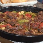 Yeşil biberleri ve taze fasulyeleri önce yıkayıp, ortadan ikiye bölün ve etin üzerine katın.