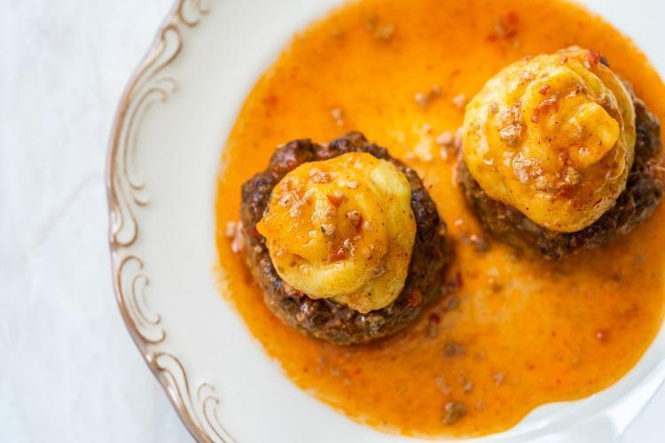Kızaran köfteleri fırından alıp ortalarını patates püresiyle doldurun.