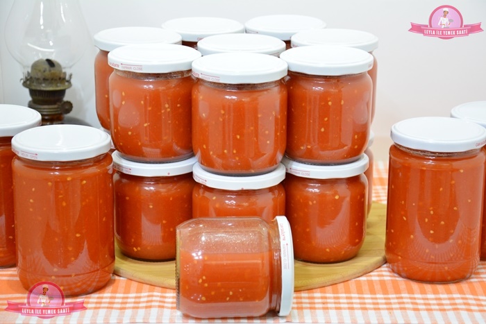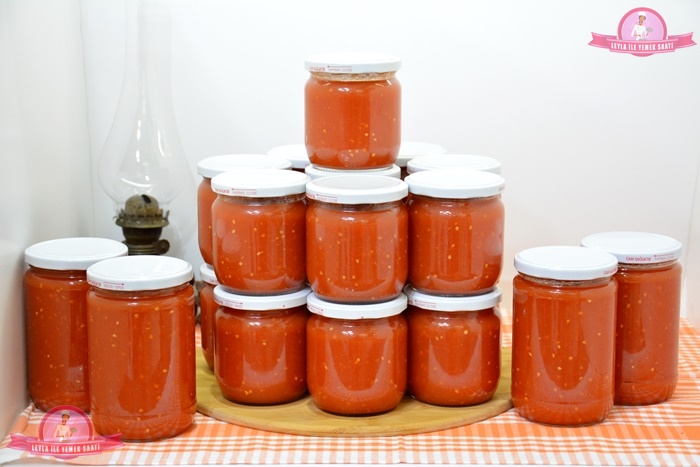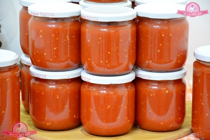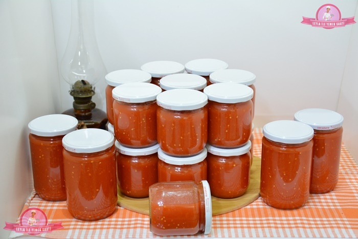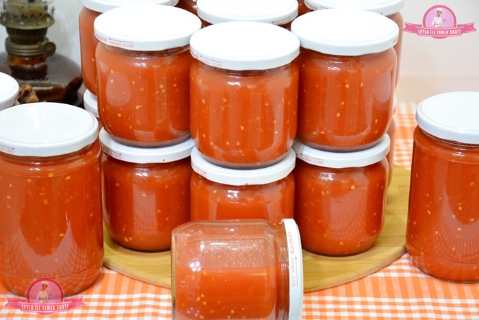 - Domates Sosumuzu sıcak sıcak kavanozlara doldurup kapaklarını sıkıca kapatıp tezgaha ters çevirerek soğuyana kadar bekletelim.