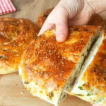 - Bezelerimizi servis tabağı büyüklüğünde açalım. Harcımızı hamurun yarısına gelecek şekilde koyalım. Diğer tarafından üzerini kapatalım. Kenarlarını hamur kesiciyle keserseniz güzel kapanacaktır. Tüm hamurları bu şekilde iç malzemeli şekilde hazırlayalım.
