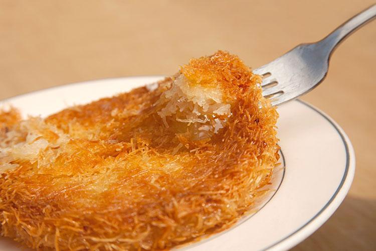 Yaş kadayıfın yarısını tel haline getirerek yerleştirin. Böylece tabanı hazırlayın.