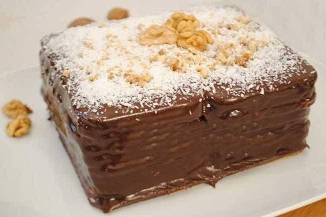 Hazırladığınız pastayı buzdolabında bir süre bekletin. Üzerini Hindistan cevizi ve cevizle süsleyerek servise sunun.