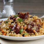 Pilavınız pişince tencereyi ters çevirip etler üzerinde kalacak şekilde servis edin.