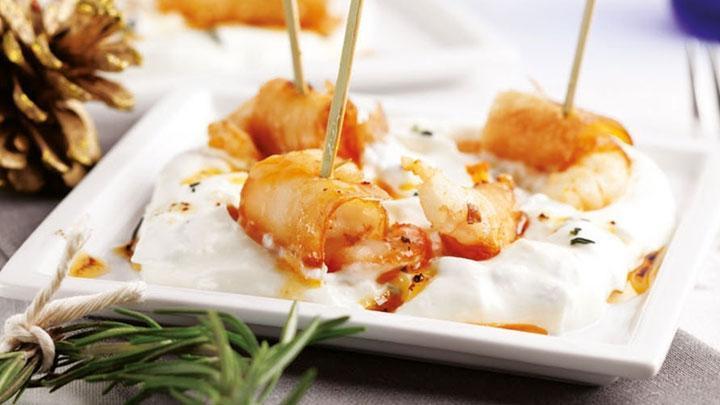Yufkaları bir tezgaha serin. Eni karideslerden daha dar olacak şekilde uzun şeritler kesin. Yufkaların ortasına ayıklanmış karidesleri yerleştirip karideslerin her iki kenarı da dışarıda kalacak şekilde sarın ve ucuna hafif su sürüp yapıştırın.