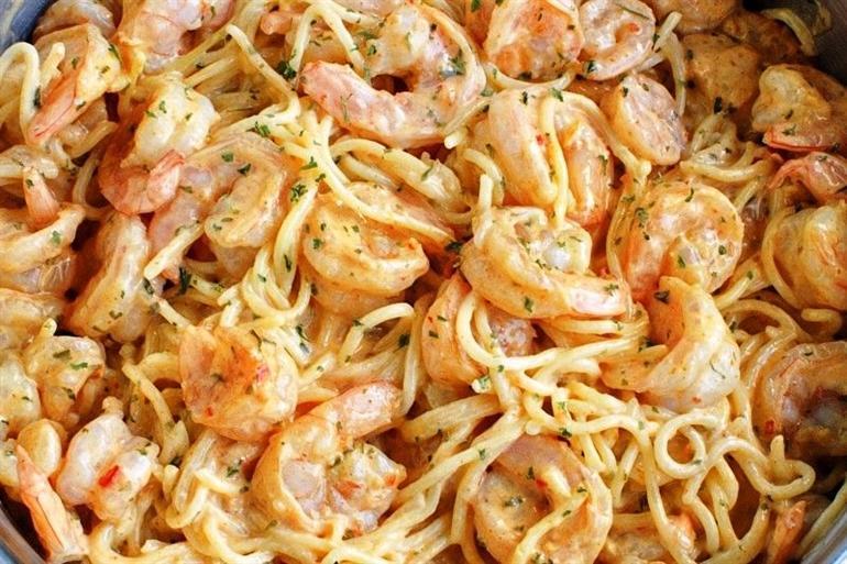 Makarna pişince karidesleri ve sosu içine dökün ve iyice karıştırın. Sıcak sıcak servis edin.