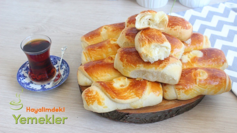 Hamurumuzu yumurtadan büyük bezeler yapın,bezeleri elinizle uzunlamasına açın arasına beyaz peynir ve kaşar peynirini yerleştirip rulo yapın, yağlı kağıt serilmiş fırın tepsisine aralıklı olarak yerleştirin Üzerine temiz bir bez örtüp 45 dakika kadar dinlendirin.
