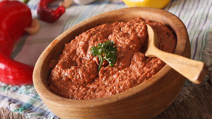 Derin bir kabın içine beyaz peyniri koyup, üzerine zeytinyağını ve sarımsağı ekleyin. Sonra da çatalla iyice ezin. Öte yandan kimyon ve pul biberi ceviz içiyle beraber ilave edip, karıştırmaya devam edin. Ardından içine 1 yemek kaşığı kadar da domates salçası ekleyin ve iyice karıştırın. Muhammaranız hazır!