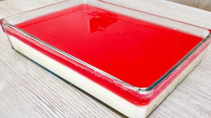 - Üzerine; çilek aromalı bitkisel jöle (2,5 su bardağı kaynar su ile hazırlandı)