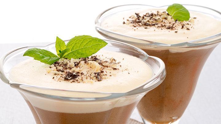 Servis kaselerine ya da bardaklara birer parça bisküvi ekledikten sonra yarısına kadar ılık şokolayı dökün.