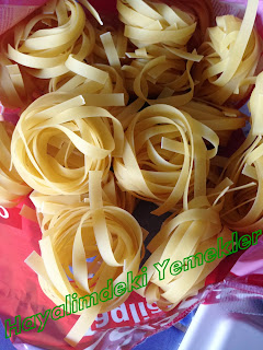 Tagliatelles makarnanın sekli biraz farklı piştikten sonra erişte gibi oluyor