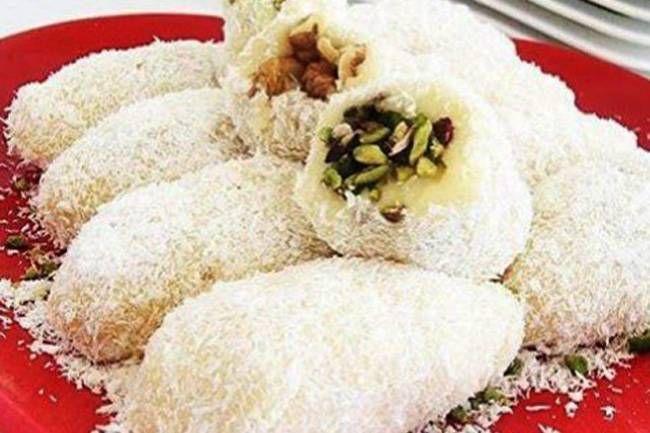 Elinizle şekil verecek kıvama geldiğinde limon büyüklüğünde parçalar koparın. Hamur elinize yapışıyorsa ya elinize Hindistan cevizi alın ya da elinizi hafif su ile ıslatın. Avucunuzun içinde açıp içine iç malzemeden koyup kapatın. Oval şekil verin. Her yanını Hindistan cevizine bulayın.