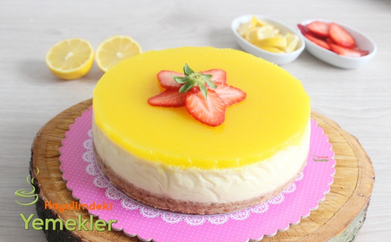 - Limonlu sos için limon suyu, şekeri,suyu, nişastayı,zerdeçallı güzelce pişirin karıştıra karıştıra kaynatın ve ocaktan alın Chessecake’nin üzerine döküp yayın buz dolabında 3-4 saat dinlendirin etrafindaki kagitlari dikkatlice kaldirip dilimleyin ve servis yapin servis yapın.