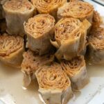 Hazır yufkaları rulo yapın ve tam ortadan ikiye kesin.