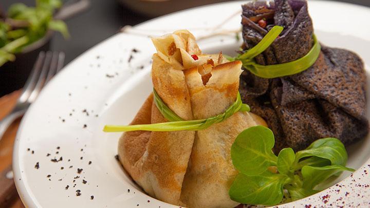 Limonların kabuğunu ince şeritler halinde kesin ve 15-20 saniye kadar az miktarda kaynayan suda pişirin. Sonra süzün ve kağıt havluya sararak biraz bekletin. Karamelini süzdüğünüz 1 çorba kaşığı meyveyi kreplerin ortasına yerleştirecek şekilde dağıtın. İçi meyve dolu krepleri bohça gibi büzüp ağızlarını limon şeritleriyle bağlayın.