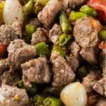 Küp küp doğradığınız soğanları da ete ekleyin ve 2-3 dakika daha kavurun.
