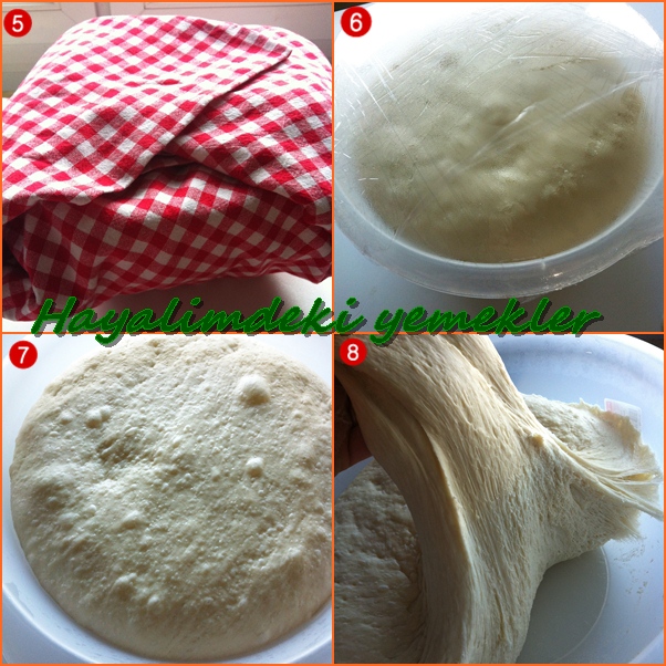 - buraya kadar tamam hamur yapiminda onemli olan seylerden biride hamurun cok iyi kabarmasidir hamurun iyi kabarmasi icin hamuru kabina alalim strec filmle veya temiz bir posetle kapatip ustunude sicak tutacak kalin bir bezle kapatip 1,5 saat dinlendirin