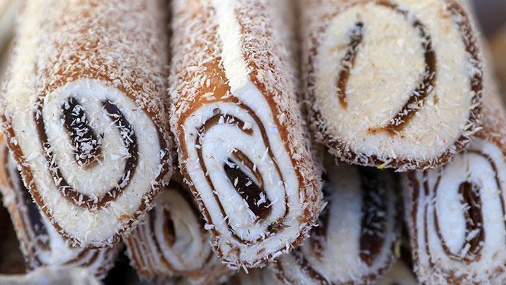 İki paket krem şanti ve 1 bardak sütü çırpın. Soğumuş pudingin üzerine yayın. Dilediğiniz gibi kesip, spatula yardımı ile rulo şeklinde sararak servis tabağına yerleştirin.