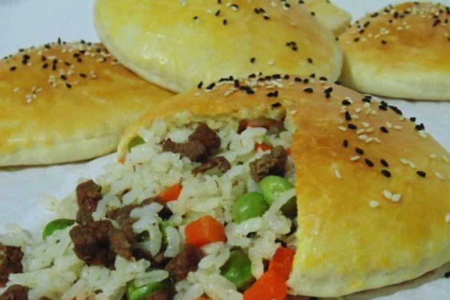Kabaran hamurunuzu, hafif unlanmış tezgahın üzerine alarak bir silindir yapın. Bıçakla keserek 12 eşit bezeye ayırın her bezeyi ince bir şekilde açın. İçine pilav harcınızdan koyun. Açtığınız diğer bezeyi üzerine kapatın. Kenarlarını yapıştırın. Üzerine yumurta sarısı sürün.
