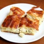 Diğer yufkaları da aynı şekilde bölerek yerleştirin ve kalan üzerine ayçiçeği yağı gezdirin. Yufkanın dışarıda kalan kısmıyla üzerini kapatın ve altını kızartın.